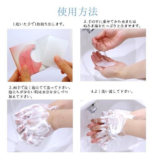 【使用上の注意】・お肌に合わない時は、ご使用をおやめください。・使用中、または使用後に異常があらわれた場合は、使用を中止し皮膚科専門医等にご相談ください。そのまま使用を続けると症状を悪化させることがあります。・香りが弱くなる場合がありますがご使用には問題ございません。・保管環境によりフィルム表面に白い粉(界面活性剤)が生じることがありますがご使用には問題ございません。・乳幼児の手の届かないところに保管してください。・高温多湿、光を避けて保管してください。・目に入らないように注意し、目に入った時にはすぐに水で洗い流してください。